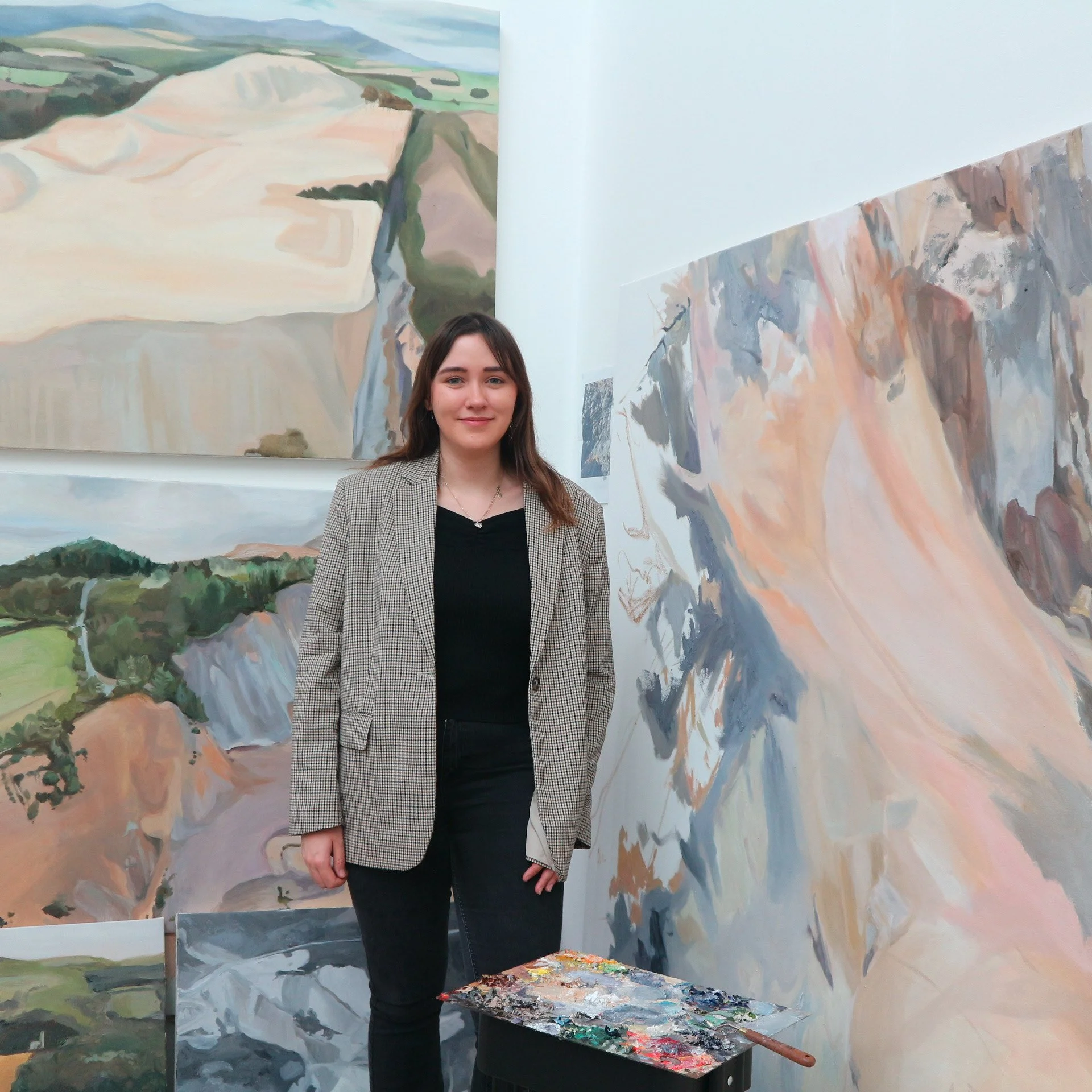 Catherine Ward (b. 2000, Dublin) is an artist whose practice examines landscapes shaped by extraction, labour, and decay. Drawing from disused quarries, mines, and industrial sites, her work reflects on land as a finite and politicised material — marked by absence, scar, and trace. Through painting and moving image, she maps the residual forms and social histories left behind when these environments are abandoned or transformed.